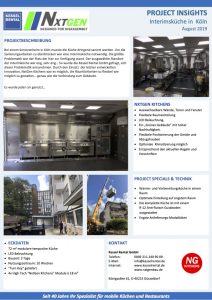 Die größte Problematik war der Platz der zu Verfügung stand, der ausgewählte Standort der Interim- Küche war sehr eng… So wurde die NxtGen Modulares Bauen GmbH gefragt, sich dieser Problematik anzunehmen. Durch den Einsatz von der letzten entwickelten Innovation NxtGen Small war es möglich, die Räumlichkeiten so flexibel wie möglich zu gestalten… genau wie die Verbindung zum Gebäude.